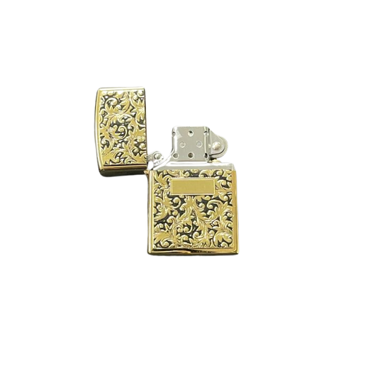 Zorro Lighter Fluid Refill Flip Lid Stained Gold Design